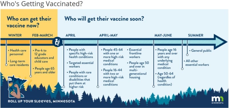 We’ve all seen the news reports showing the steady rollout of the COVID-19 vaccine among Minnesotan healthcare workers, seniors, susceptible groups and educators, but until recently, there’s been nothing more than speculation as to when certified food managers and other food industry employees will be eligible. In a recent announcement by Governor Tim Walz, a more detailed tiered approach to coronavirus vaccine distribution was explained and it provides specific vaccination news for certified food managers.