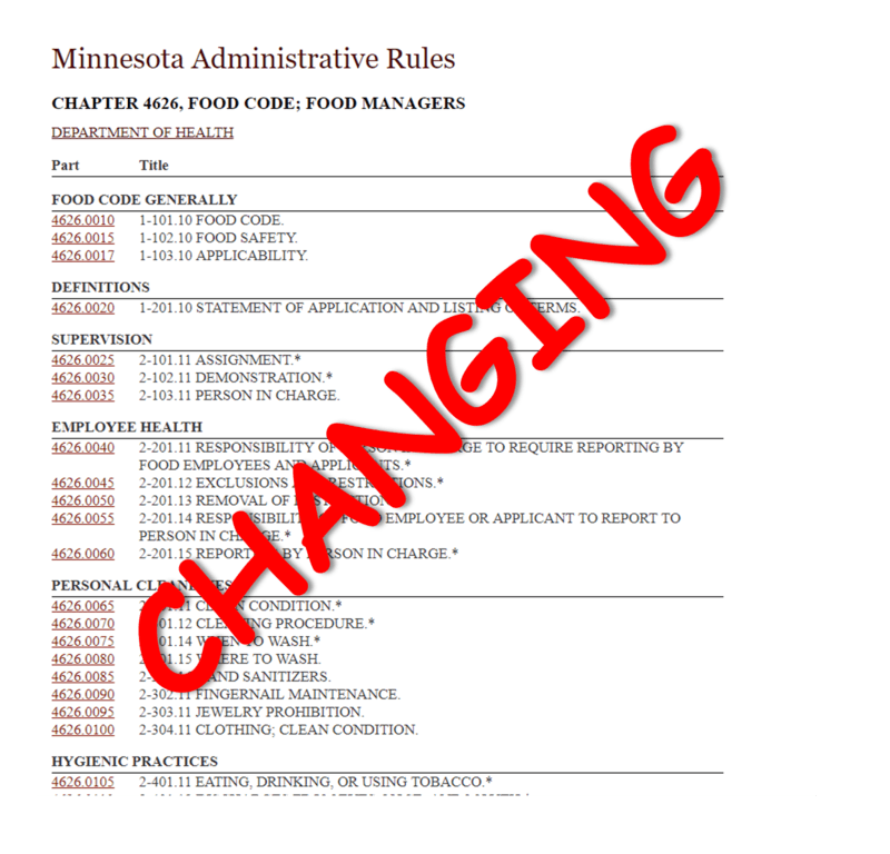 For the first time since 1998, the Minnesota Department of Health is proposing changes to the state’s food code. While some of these changes to the Minnesota food Code are merely an altering of the terminology used throughout, there are a few proposed changes that certified food managers need to pay attention to.